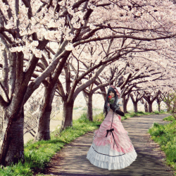 green leaves, adorns cherry apple and pear.A spring bride, in her train, fragile blossom